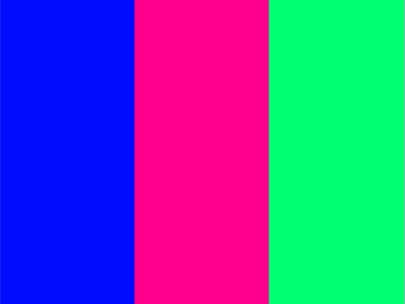 Computer screens these days are made up of hundreds of thousands of pixels, which in turn are made of subpixels, which are tiny lights that emit some amount either red, green, or blue light. We use these colors because they roughly correspond to the sensitivities of the three types color-detecting cells in your eyes, called cones. Thus, the obvious way to store color values is to just store how much red, blue, and green light makes up each color. This is the idea behind the RGB color model, which is the de facto standard for storing color information on computers1. You can think of an image as just a file containing a list of numbers, with the first number representing the amount of red in the first pixel, the second representing the amount of blue in the first pixel, the third representing the amount of green in the first pixel, and so on for every pixel in the image. Real image formats are more complicated than this because of compression, but often this is how color data will be given to you by APIs designed to read and process image data. In an API, you'll often see these numbers as either a real number between 0 and 1, with 0 being no red/green/blue and 1 being maximum red/green/blue, or as an integer between 0 and 255 (the largest number that can be represented with eight binary digits, or one byte of data).