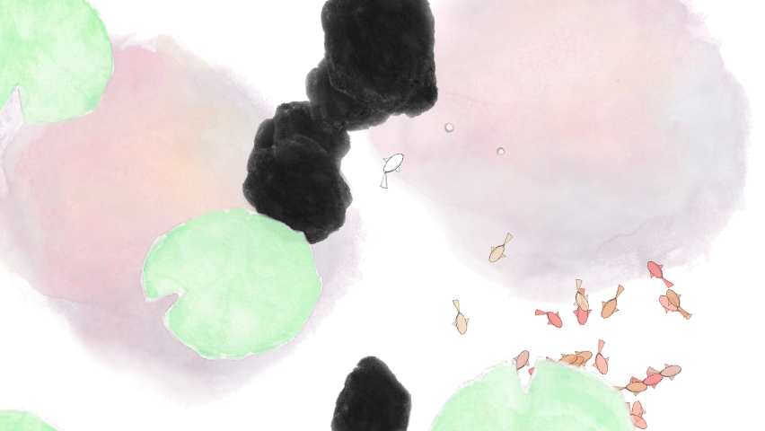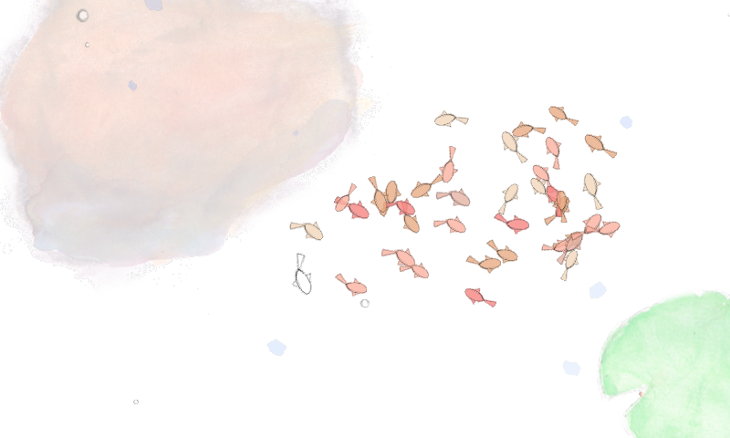 I was working on an early prototype for my watercolor fish simulation, Guppy, when I started to get really bored with playing the same tiny test level with the same obstacles and hiding places again and again. I could have made a new level, or several, but it seemed this would only postpone the inevitable and I would soon grow tired of those levels as well...