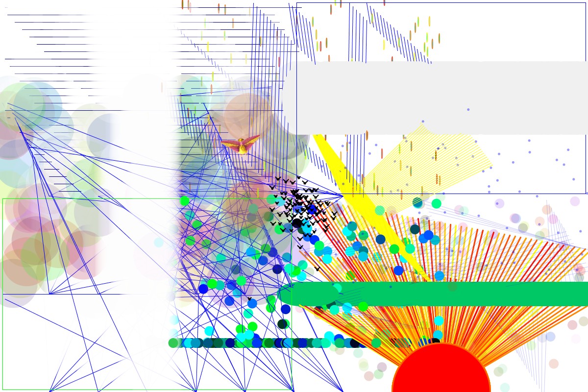 We started to think how we could get non-artists involved and designed a series of workshops where beginners could learn some creative coding and make small generative animations — unique to each person. Using the Processing language meant these could be taught almost instantaneously — in the space of an hour anyone can create something substantial with a rich variety of output over time. The next stage is to copy each person's code into a larger container program and then run all the code snippets at once in a shared space. By varying each workshop thematically we further enrich the output. For the Canterbury workshops we used the four elements EARTH, WATER, AIR and FIRE as starting points for people to experiment with.