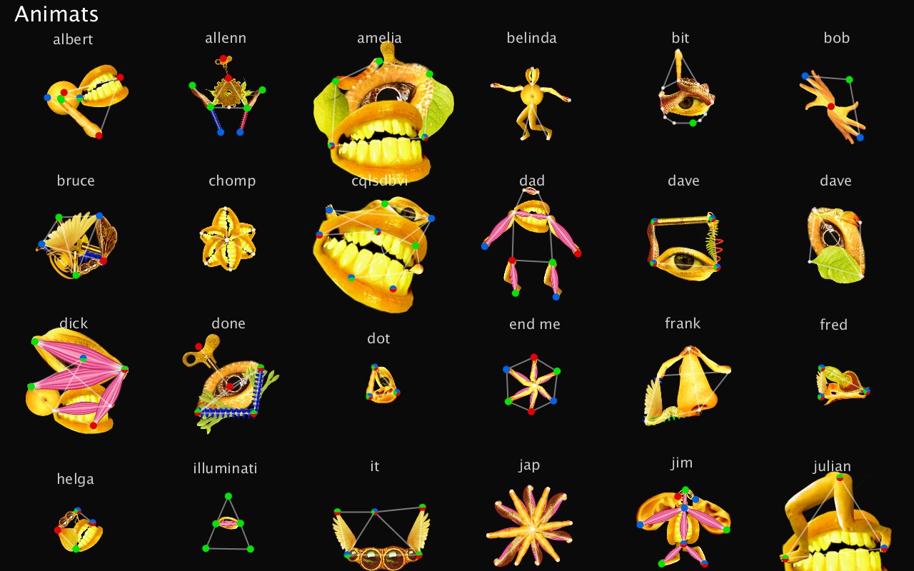 Now as this is a Genetic Moo project we added in some digital creature design (ANIMATS) and some of our own artificial life forms (amongst them CORAL and TERMITES) to occupy the shared space and respond to the ever changing animations and a superorganism is born.