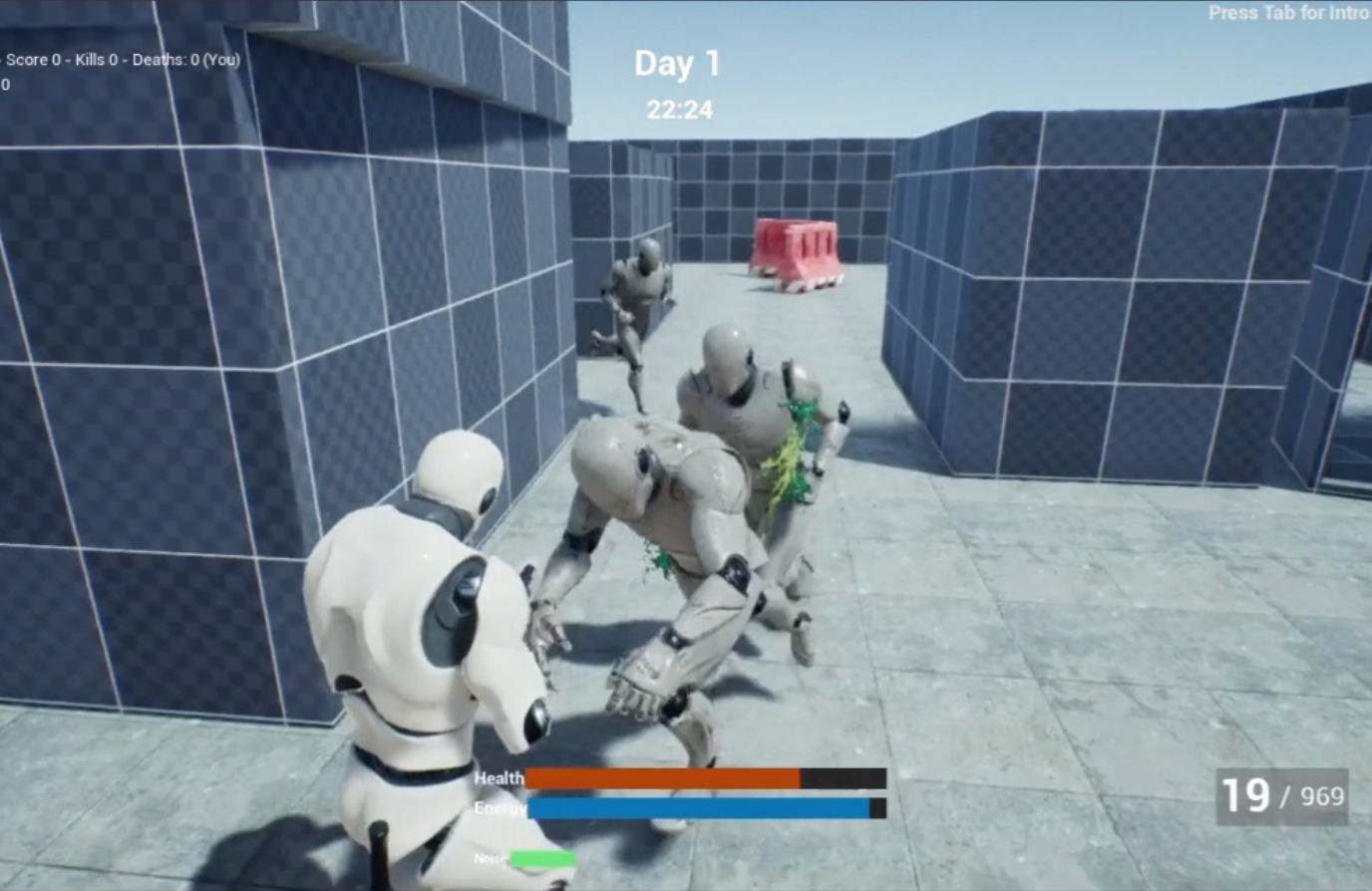 To test this system, we generated behavior for “zombie” AI agents in the open-source “Epic Survival Game” by Tom Looman. We removed functionality for chasing and attacking from the zombies’ behavior trees, but provided a library of useful nodes to our evolutionary algorithm. We found that, within a few generations, zombies would learn to chase the player and patrol the area. At first, some zombies would attack the player briefly, then turn and run away. By adding the size of the tree as a fitness penalty, we found that the efficiency and simplicity of the trees would improve over time, until most zombies exhibited consistent chasing behavior. Although this was a very simple test environment, we believe that future iteration will allow us to generate behavior for more varied and complex agents. Our next step will be to separate our system into a generic library for behavior tree evolution in Unreal Engine 4 so that it can be tested with more games.