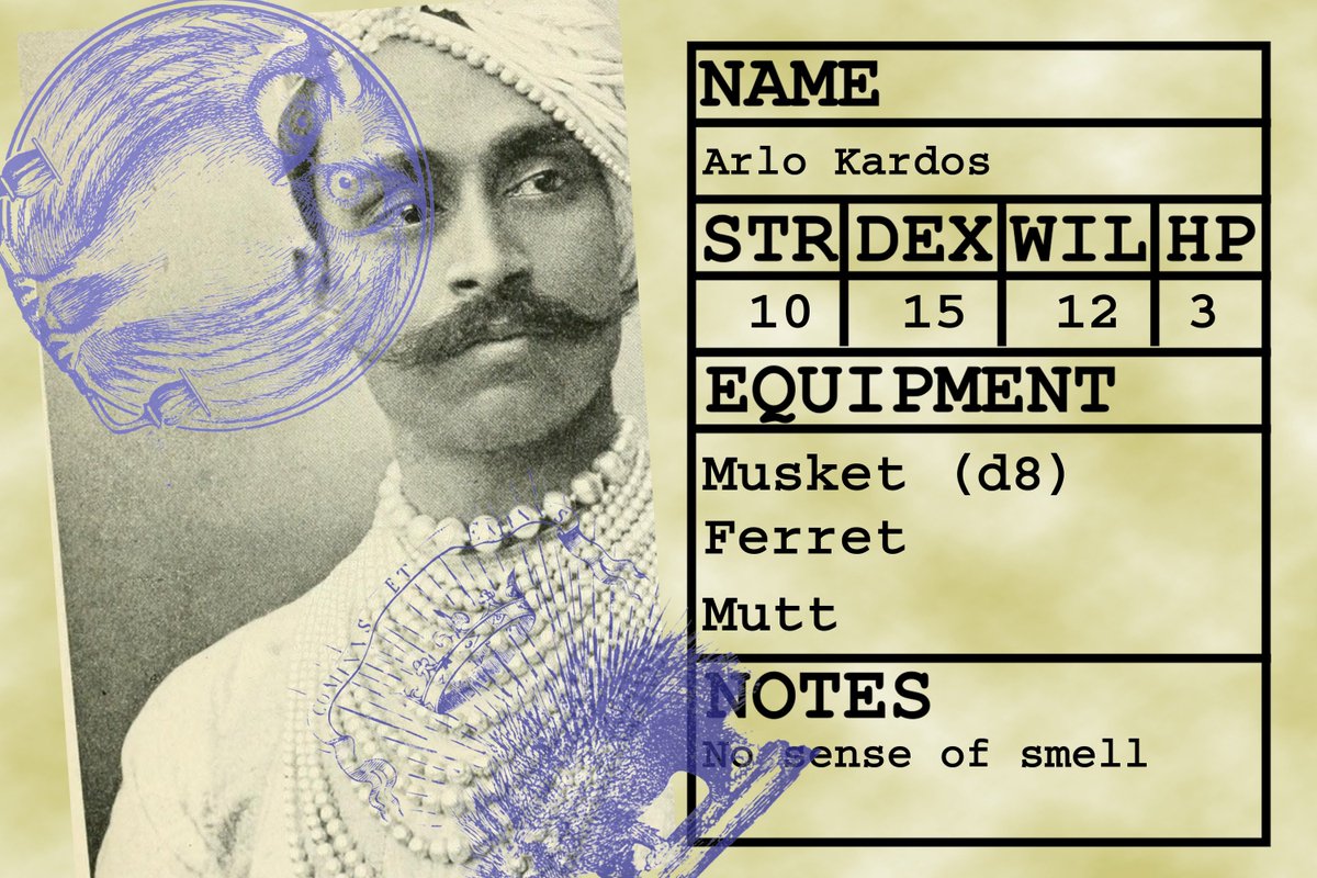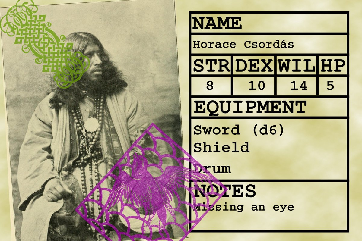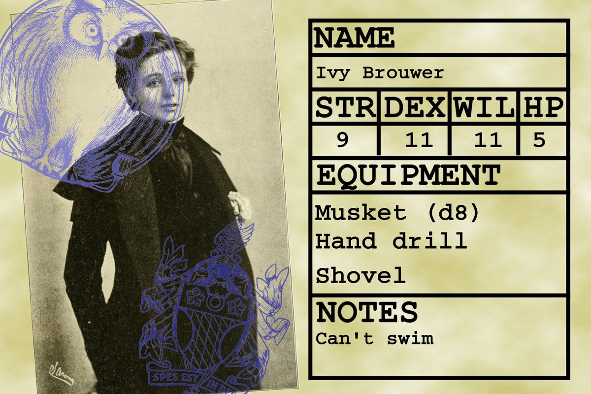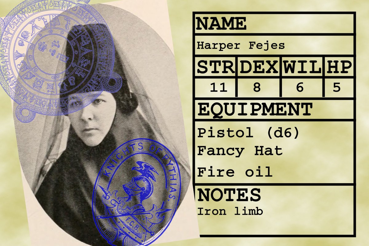 These are character sheets for the game "Into the Odd", a tabletop RPG set in a weird 19th century. The vast majority of the photos come from the Internet Archive Books Project Flickr account, and the images were composited with ImageMagick.